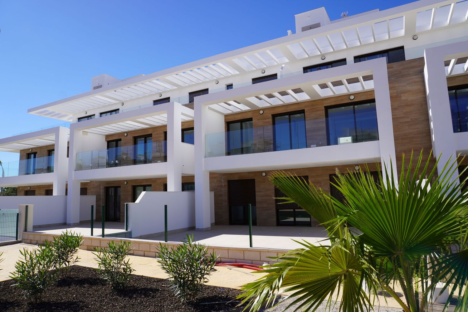 Toplocatie voor golf- en natuurliefhebbers, deze moderne verdieping appartementen met een balkon van 18 m2, voorzien van 2 of 3 slaapkamers en 2 badkamers waarvan 1 badkamer en suite. Door de gevelbekleding met houtnerftegels heeft het geheel een luxe uitstraling. De woningen met een bebouwd oppervlak van respectievelijk 83 m2 en 105 m2, afhankelijk van het aantal slaapkamers, bevinden zich op slechts 1 km van de zee en zijn geschikt voor zowel permanente bewoning als verhuur. Ze worden opgeleverd inclusief een parkeerplaats in de ondergrondse parkeergarage met 5-7 m2 berging voor oa fietsen. De parkeergarage is bereikbaar met de lift. De erg mooi aangelegde gemeenschappelijke ruimte met veel groen heeft 2 zwembaden waarvan het infinity zwembad prachtig zicht heeft over het golfresort. Naast het zwembad zijn toiletten en er is een ruimte met kinderspeeltoestellen.